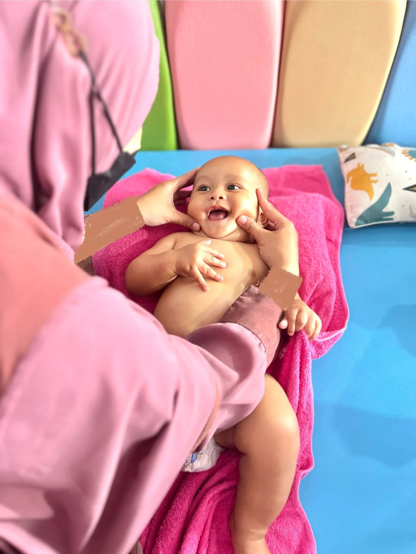 Layanan perawatan bayi usia 0 – 12 bulan seperti paket perawatan bayi baru lahir, pijat bayi, terapi bayi sakit, stimulasi motorik dan berbagai treatment lainnya.