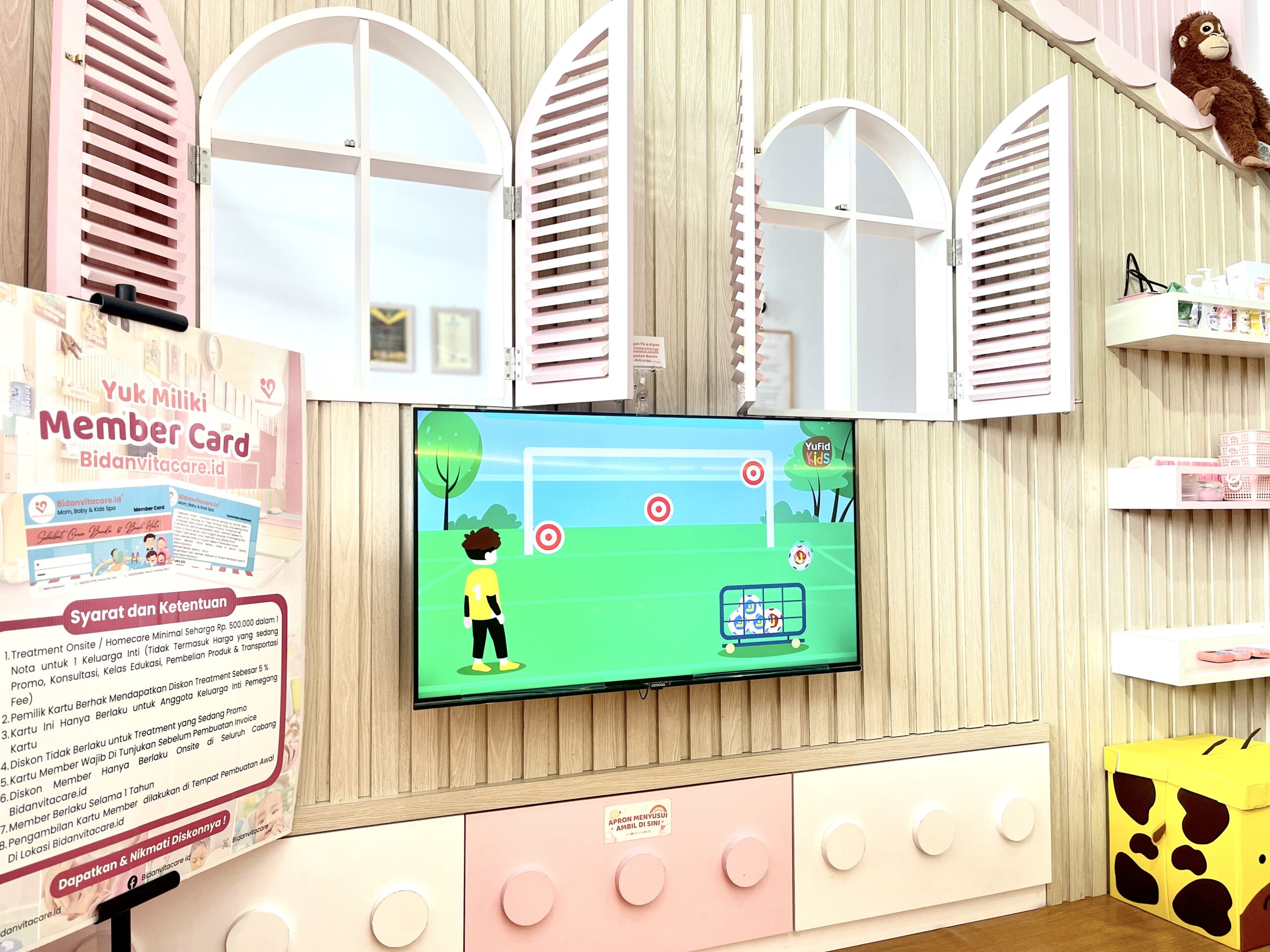 Ruangan treatment Bayi, Anak & Bunda dilengkapi dengan TV yang membuat suasana menjadi lebih ceria